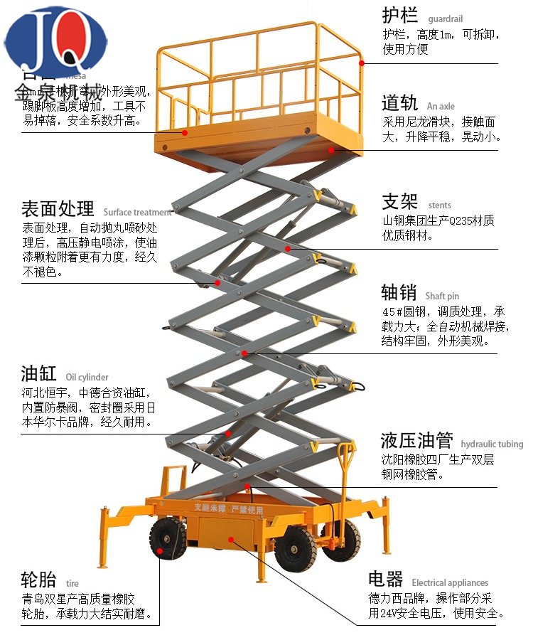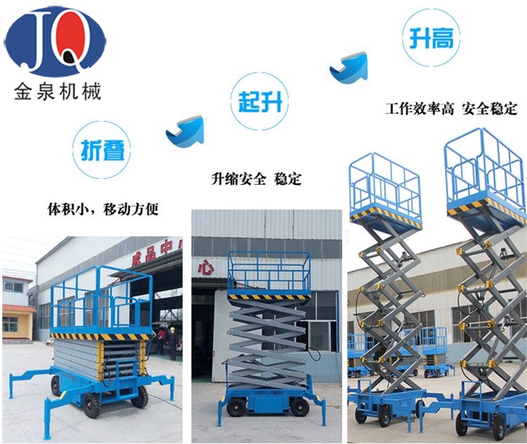 金泉機(jī)械引進(jìn)先進(jìn)流水線生產(chǎn)工藝流程,機(jī)器人焊接,全數(shù)控切割,高精度鋼板折彎,批量定做特殊材質(zhì)型材,拋丸烤漆處理,無損批量組裝!自行剪叉升降機(jī)、自行曲臂升降機(jī)等高端升降機(jī)械近期量產(chǎn)!金泉機(jī)械用高端工藝打造精品升降機(jī)械,售低端價(jià)格、創(chuàng)造升降機(jī)行業(yè)新起點(diǎn)!經(jīng)銷商火熱招商中!金泉機(jī)械,只做精品!